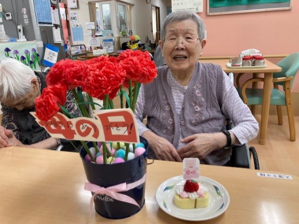 グループホームみんなの家・墨田では5月の「母の日」にお誕生会と母の日を祝いました。