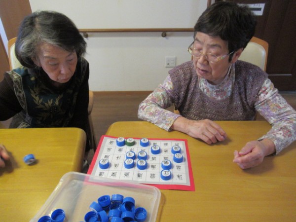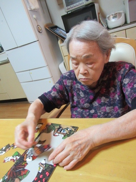室内ではカルタをしたり、一方では計算ドリルをやっています。