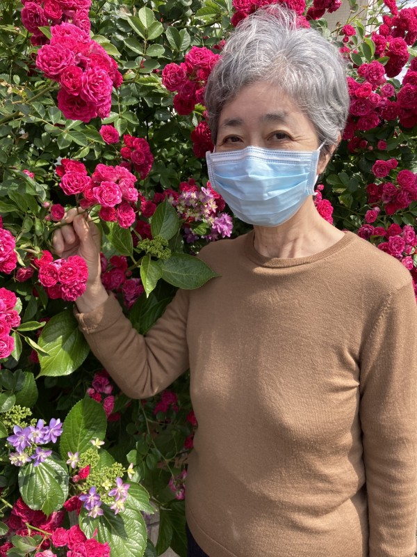 心地よい日差しの中歩いていくと…ご近所にピンクのバラが満開に咲いている場所を発見!!
