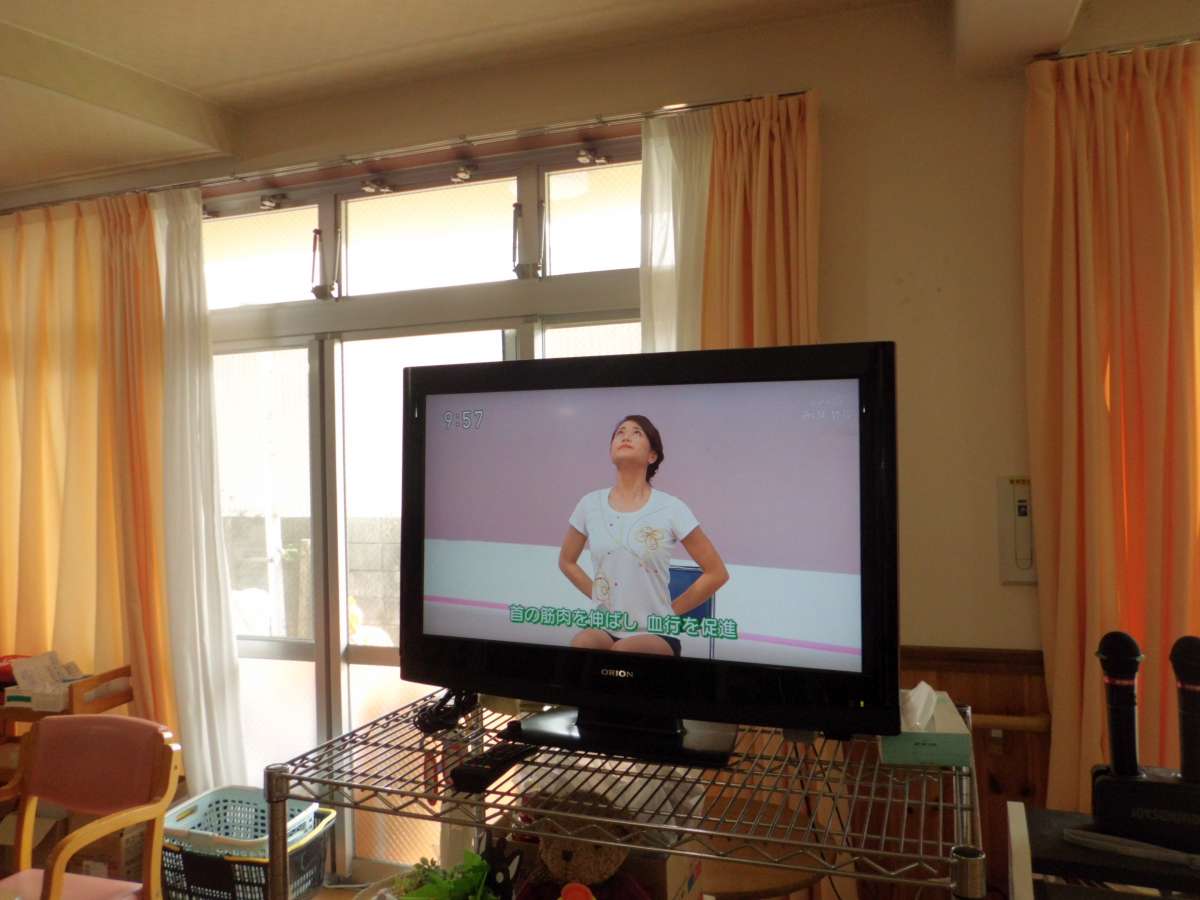 介護付有料老人ホームすこや家大宮日進では、10時のお茶の時間の前に体操を行なっています。ちょうどお茶の時間前に、テレビで放送される体操に合わせて体を動かします。体を動かした後は、紅茶やお茶などで水分補給!