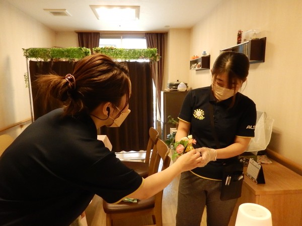 当施設、ネイリストのツートップ(^^)vで可愛らしいお花やおしゃれ照明等をベストポジションに配置していきます(#^^#)