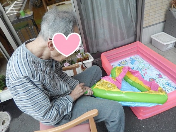 こちらのお二人も、当施設の庭に咲いた「青や紫のアジサイ」を浮かべたプールを凄く気に入っていただいたようで、長い時間楽しんでいただけました(*^^*)