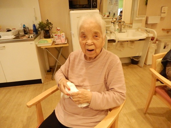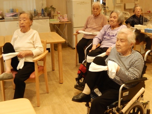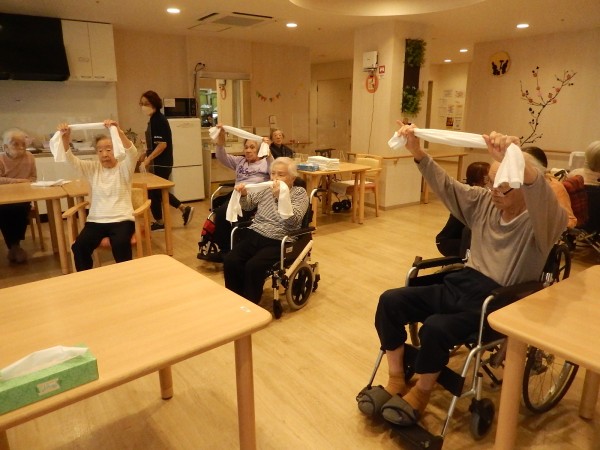 本日、お風呂の順番待ちの時間に「A(あんしん)K(かんたん)トレーニング“タオル体操”」を行いましたぁ(^^♪