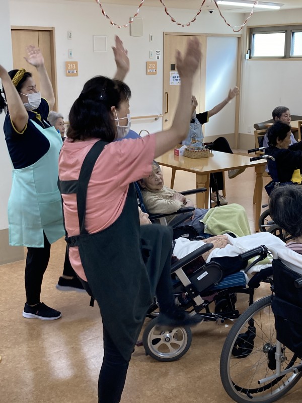 スタッフも、利用者様の補助をしながら一緒に体操していました。