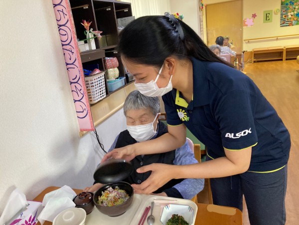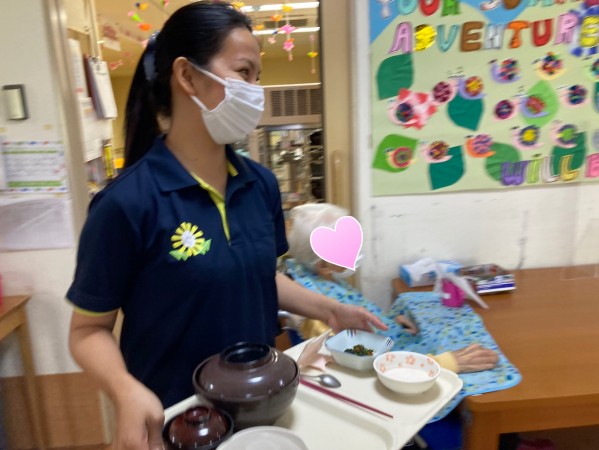 ご利用者様にお食事をお持ちするのは小沼ケアスタッフ。