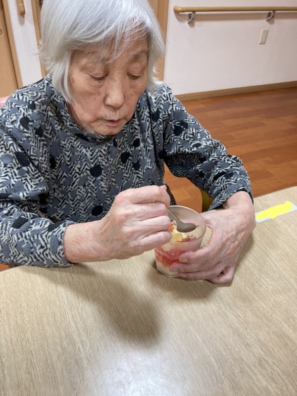 職員があまったゼラチンで手作りのおやつを