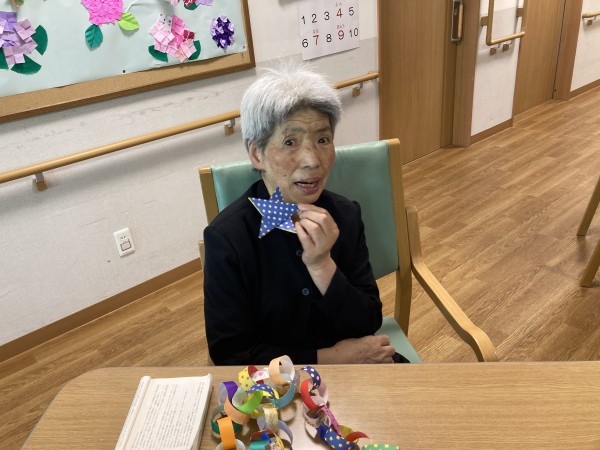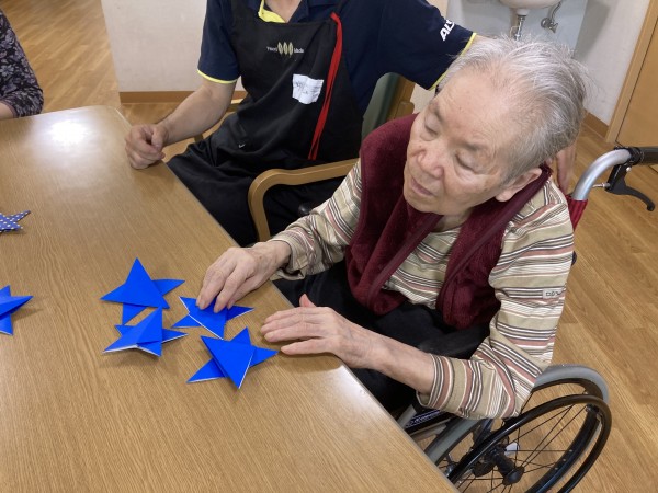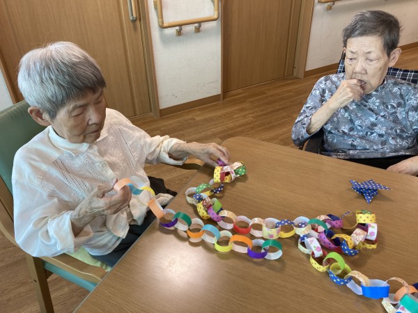 来月の七夕にそなえ飾りつけをご入居者様と行っており、フロアは徐々に七夕モードになっております♪