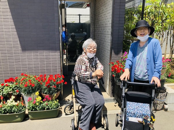 ホームの皆さんも天気の良い日は外へ散歩に出かけられていました