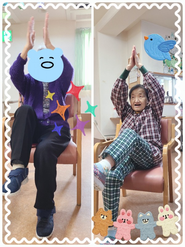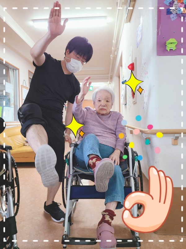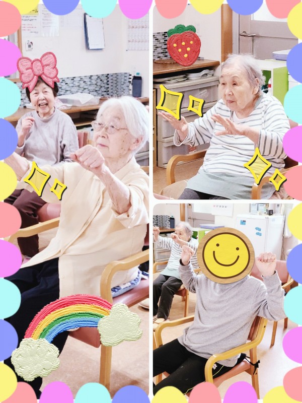 4階のマドンナK様も一生懸命参加しており、隣では夜勤明けのA職員も一緒に参加(*'▽')」