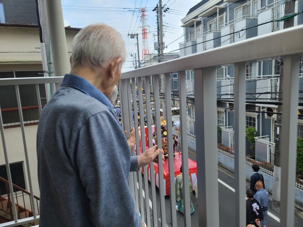 みんなの家・墨田2Fでは、朝みなさんと体操をしている時 外から太鼓の音が聞こえてきて
