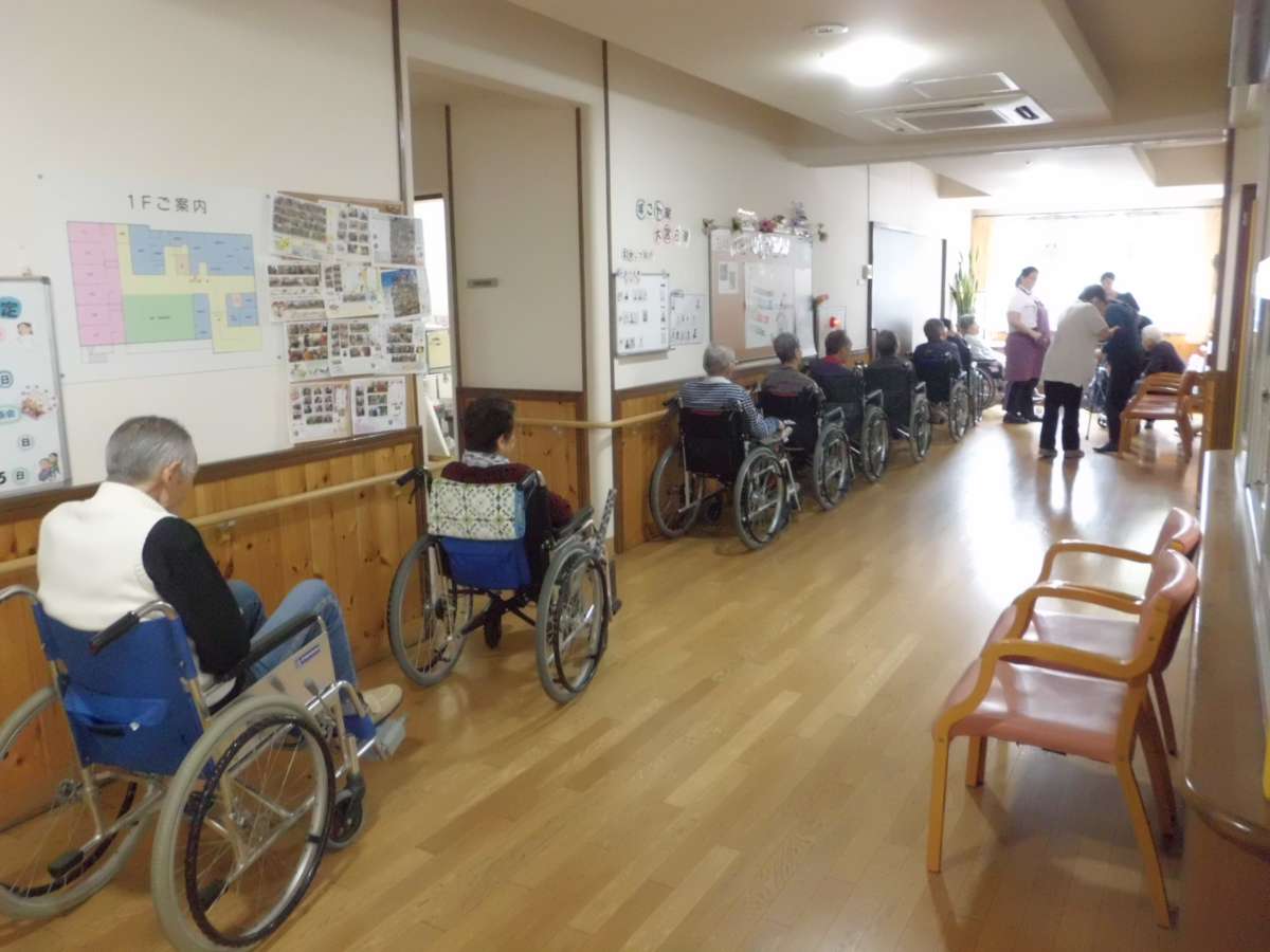 介護付有料老人ホームすこや家大宮日進では、月に2回ふじみ野中央クリニックの訪問診療があります。主治医の先生がお見えになると、上の階のご利用者様から順次降りて来られ、1階の看護室前で待機されます。車椅子のご利用者様を先頭に縦列駐車といった感じで、きれいに順番を待たれています。看護室へ来られないご利用者様は、主治医の先生が居室へ足を運んでくださり、その場で診察をされます。