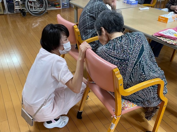 帰り際、ご利用者様に話し掛けられて、目線を合わせて話をされていました。