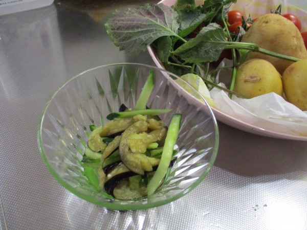 キュウリと茄子と紫蘇を使って即席のお漬物を作ってみました(^^)