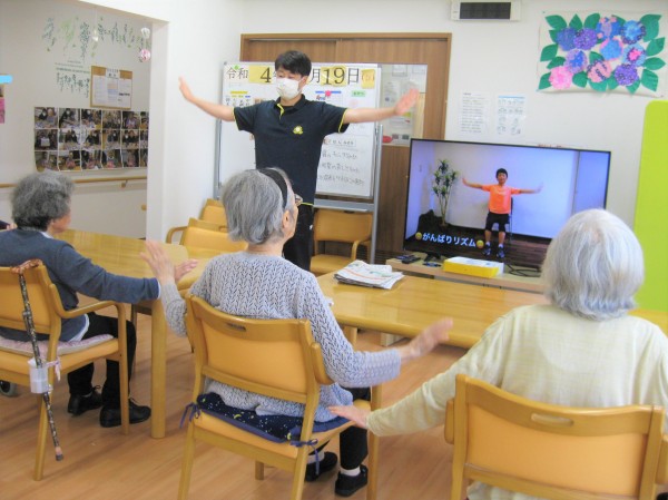 DVDを見ながら職員と一緒にALSOK体操を行いました! みなさま、元気に身体を動かされ体力維持に繋がったようでした( ^ω^)・・・  ちょっと疲れちゃったかしら(笑)