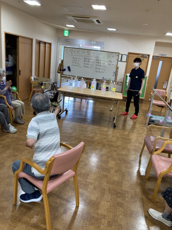ルールはフリスビーを投げて、ペットボトルを倒します!