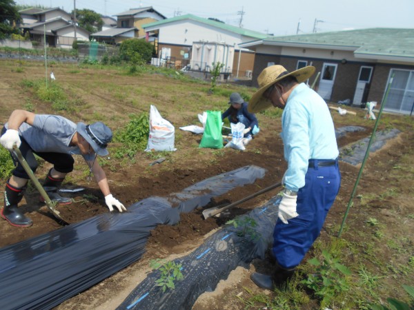 施設の裏にある畑で、前回はトマトとサツマイモを植えました。