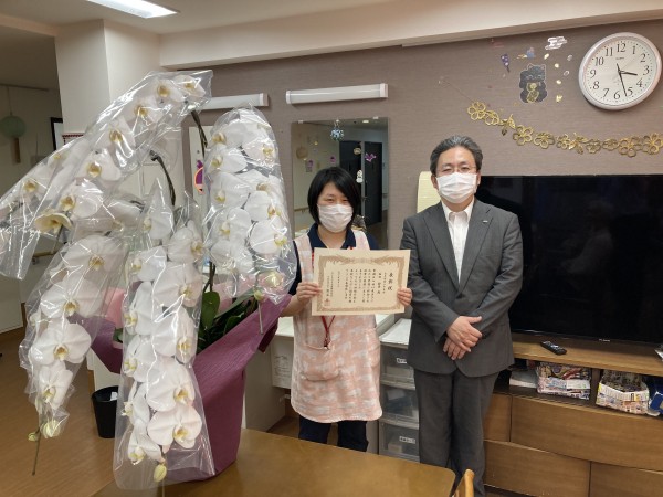 「みんなの家・川崎中野島」で働くスタッフに2022年永年勤続表彰が執り行われました。