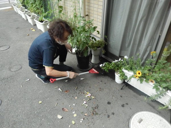 まずは、園芸委員長が自らお掃除!