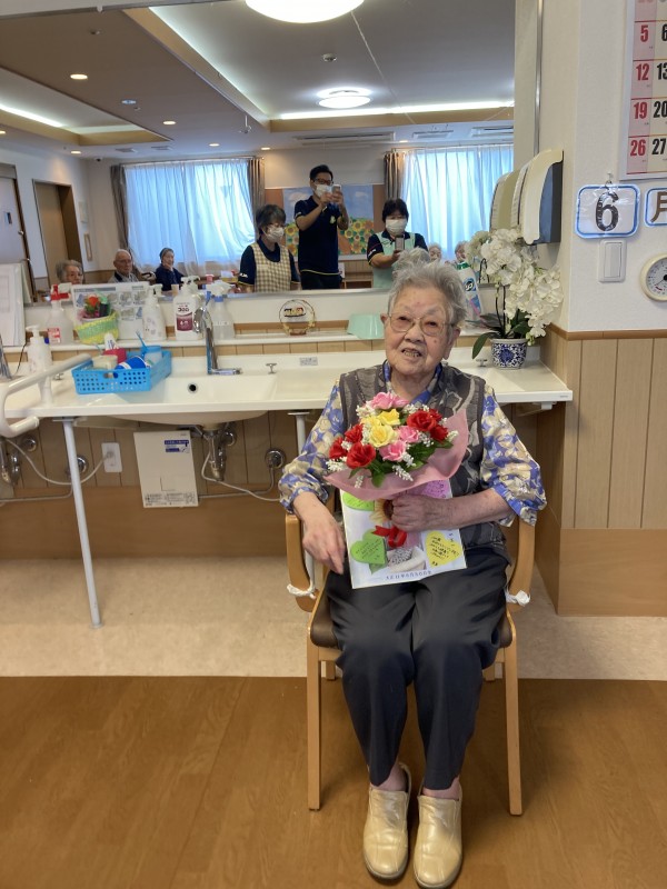 6月30日に入居されているW様が100歳になられましたのでささやかながらお祝いをしました。
