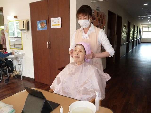 一部の利用者様が普段受けていらっしゃるシニアセラピーですが、今回利用者様と職員も体験させていただけるということで、施設はちょっとしたエステルーム♡♡♡になりました。