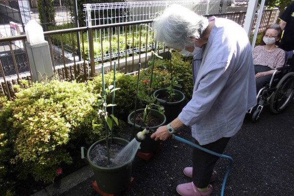 少しでも元気になってもらえるよう、日替わりでたくさんのお客様に水やりをして頂いています!