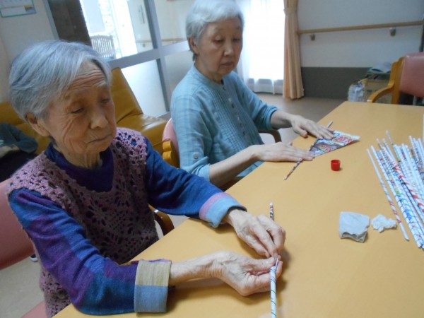 先日、入居者様と一緒に壁面の飾りを作成しました。