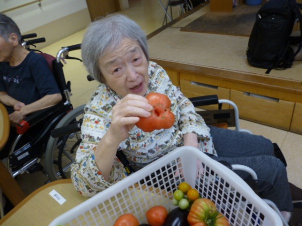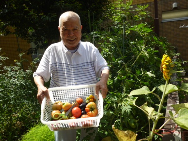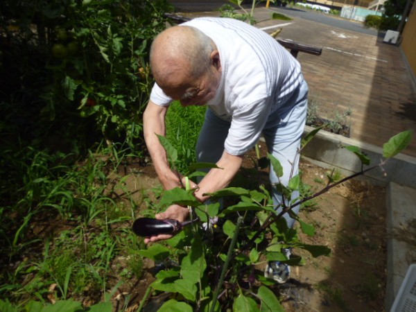 中庭の小さな畑に”ナス” ”トマト” ”ピーマン”が