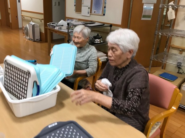 2Fのご利用者様が食器拭きのお手伝いをして下さっていました。