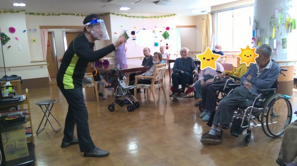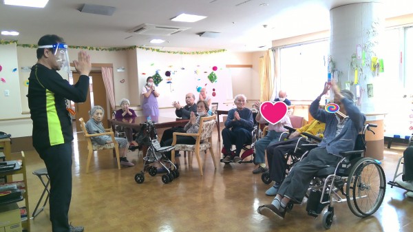 今回は、健康増進の岡田先生が体操を教えに来てくださいました。