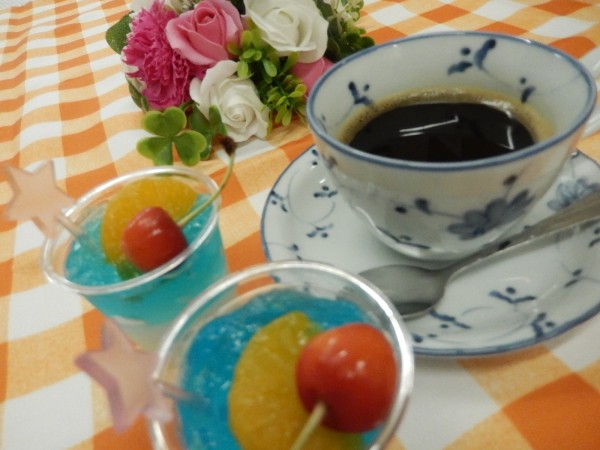 もちろん、ご利用者の皆さんと一緒に前日作った、とってもキレイで見るからに美味しそうな“七夕ゼリー”もスタンバイOK‼