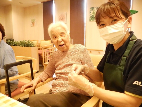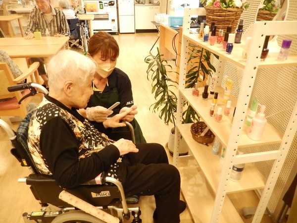 本日、爪の調子が悪かったご利用者さまには、雰囲気をご一緒に楽しんでいただきます(#^^#)