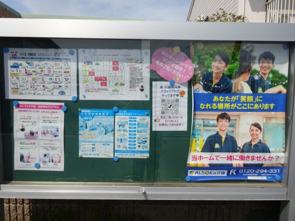 今回は先月末にデイサービスの外にある掲示板に、毎月レクリエーションカレンダーを掲示していますが、ブログ案内もQRコードをつけて掲示してみました( *´艸`)