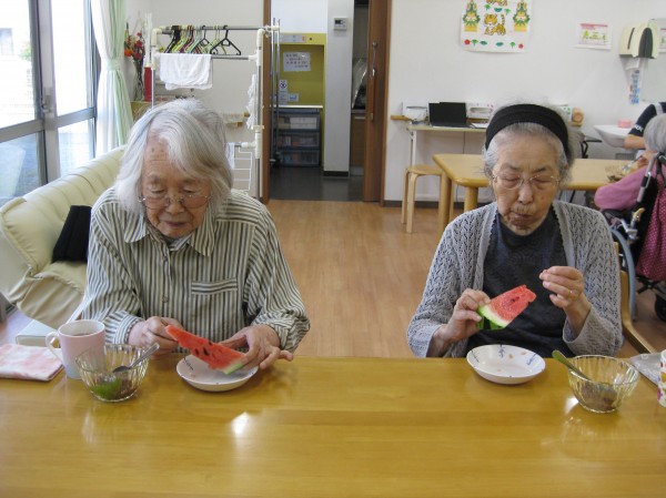 こんにちは!グループホームみんなの家・あきがせの介護ブログです!よろしくお願いいたします。今日はおやつにスイカを召し上がりました( ^ω^)・・・