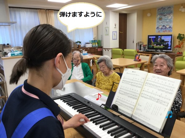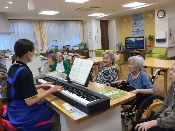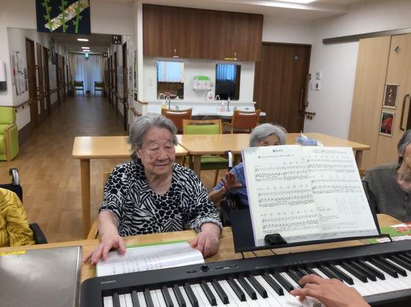 この電子ピアノは、職員がホームに皆さんと一緒にできたらと持ってきてくれた物なんです♡