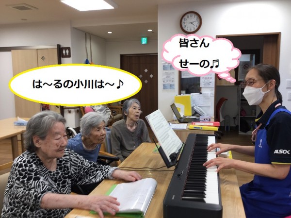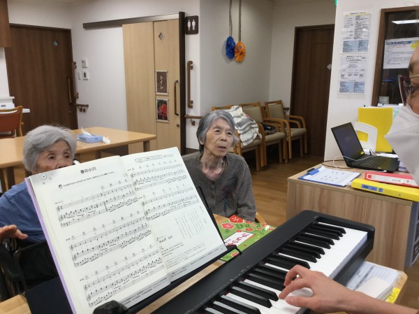 皆さんピアノの前に集まり歌を唄われているところでした(^^♪