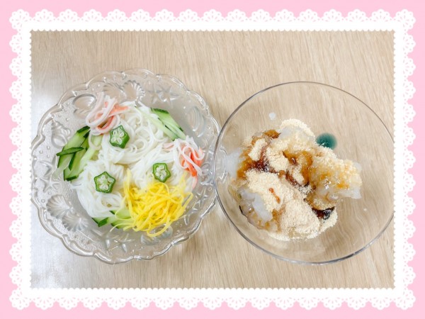 今月は七夕にちなんで素麵と葛餅を作りました。