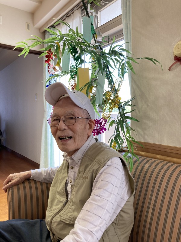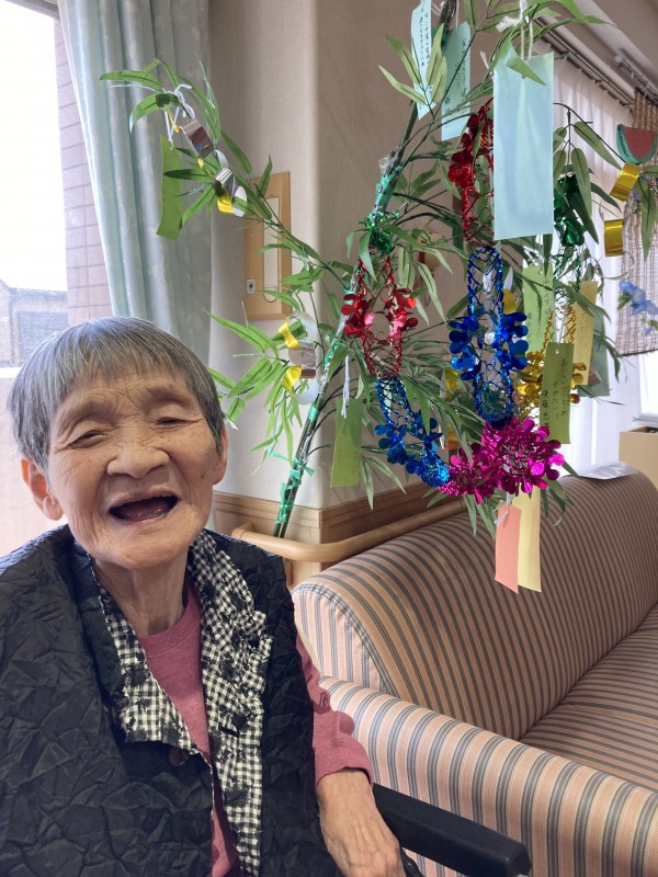 先日の七夕は、皆さんに願い事を書いて頂き、笹に飾りました☆