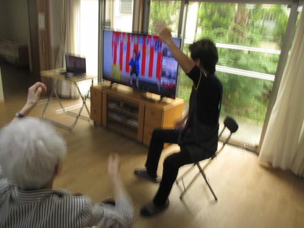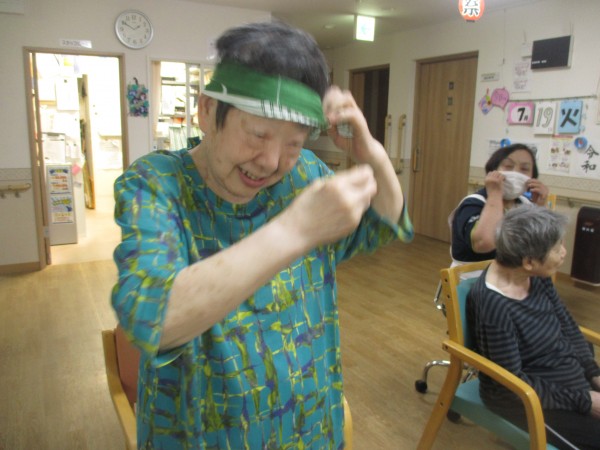 手拭いを持参され頭に巻いて、やる気満々のご入居者様、お似合いです。
