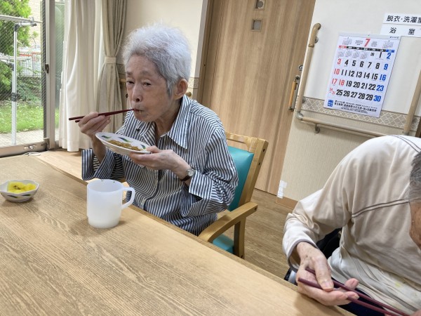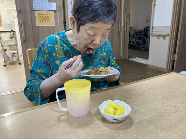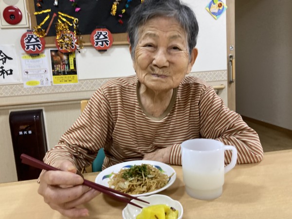 いきいき盆踊りのあとは、おやつに焼きそばとスイカを召し上がっていただきました。