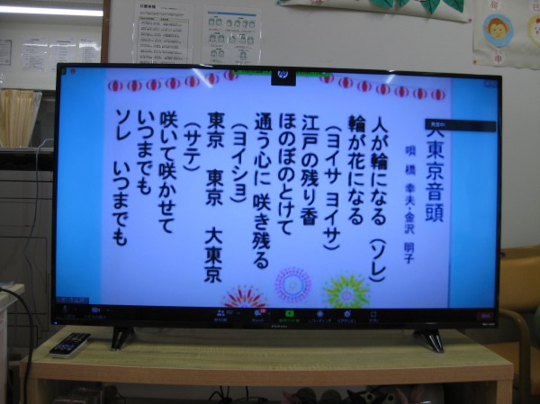 リモートでの盆踊りです。曲に合わせて、椅子に座られ体操風に盆踊りを行い、体を動かされ良い運動になりました( ^ω^)・・・ 良い汗をかいたようでした!1 みなさん、真剣に行い疲れたようです!(^^) 楽しく行うことができました!!