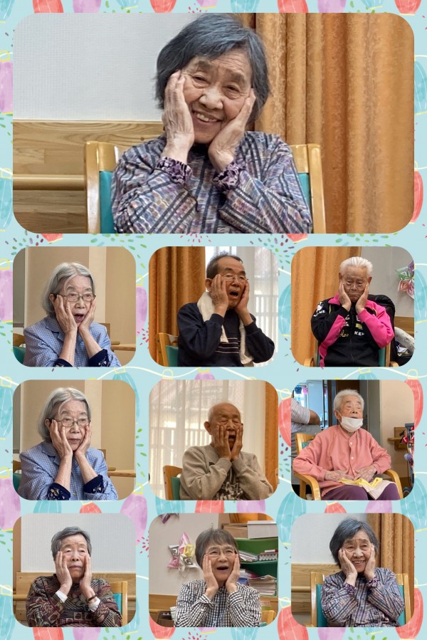 皆様しっかりお顔をマッサージし大きくお口を開けて口腔体操です!