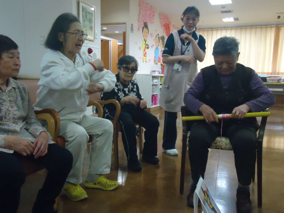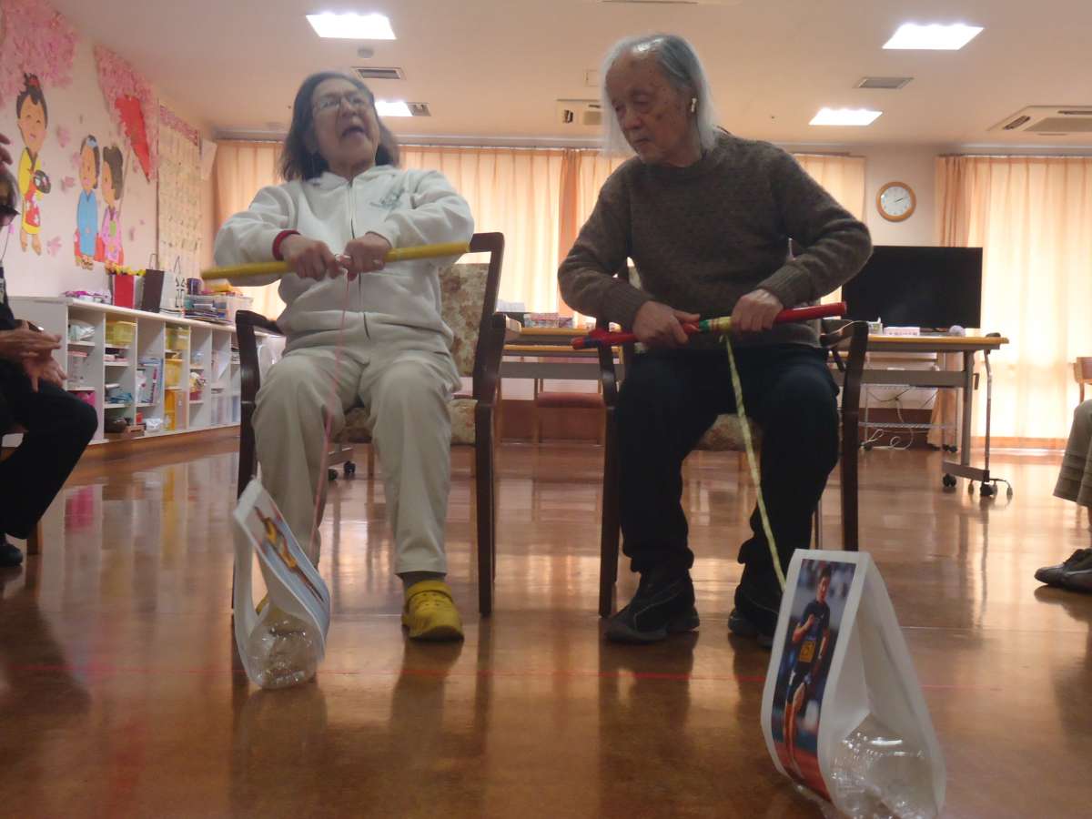 棒に長い紐がくっついていて、その先にはペットボトルが