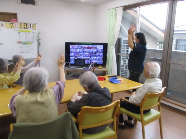 こんにちは! グループホームみんなの家・あきがせの介護ブログです! 様子をお知らせいたします!!  2階で楽しいリモート盆踊りを行ったご様子をお知らせいたします!!