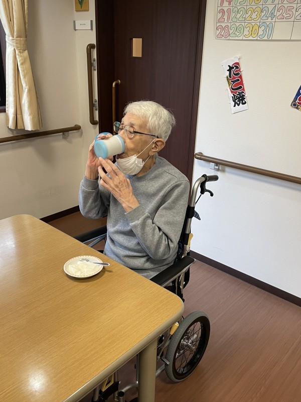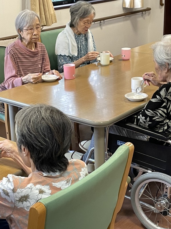 プリンのような甘いデザートの登場に入居者様は大喜びでございます。