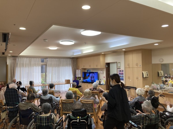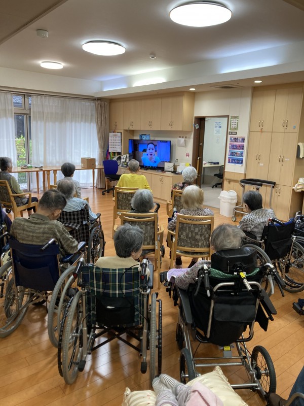 画面越しに普段一緒にご生活されている方と違う方がいらっしゃって驚かれたご利用者様もおりましたが楽しく運動を行えておりました♪♪
