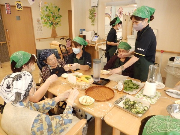 ご利用者さま達も、バンダナにエプロンを纏って準備万端です!