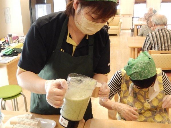 参加したご利用者さまの人数分をカップに注いだところで、“その2”に続きます(^_-)-☆