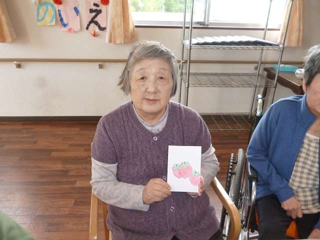 今回はボランティアさんによる、絵手紙レクの模様です。