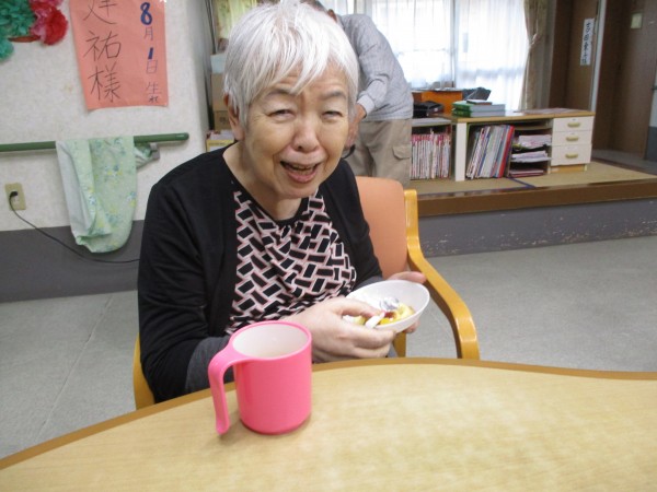 みんなでお祝いし、プリン・ア・ラモードを頂きました。