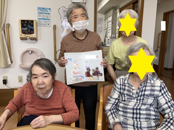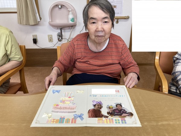 N様は小柄で、お誕生日カードでお顔が隠れてしまわれる為、